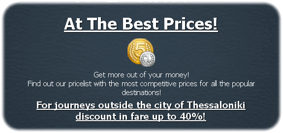 Travel with us from the Airport "Macedonia" of Thessaloniki, as well as from the Bus or the Train Station, to popular destinations such as Chalkidiki and Katerini and take advantage of the unique services we offer.